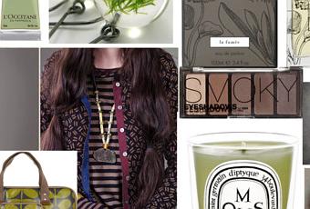 L Occitane body moisturizer / Orla Kiely padded laptop case, $81 / Bijoux géométrique / H M brown eye shadow, $6.52 / diptyque, $57