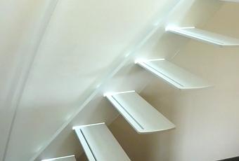 C’est dans cet esprit que le designer Jean Luc Chevallier, créa pour un contemporain à Paris, un escalier design en métal aux marches suspendues, qui vînt se fondre dans les murs de l’espace exigüe de l’appartement.