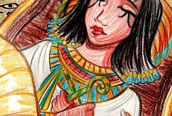 J'ai failli m'arracher les cheveux sur le dessin, une fois scanné ça ne rend jamais comme je veux le crayon, j'ai mis les hiéroglyphes en fond histoire d'améliorer le rendu.