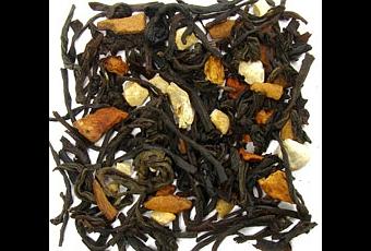 Notre composition est un thé noir parfumé aux épices douces et aux fruits - pomme, mandarine, cannelle, amande... - et agrémenté d’écorces d’orange et de morceaux de vanille Bourbon.