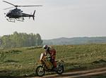 Au 55ème km la malchance semble pourtant frapper le n°14, il heurte violemment une pierre et doit réparer sommairement les rayons de sa roue avant, il garde néanmoins la tête