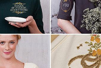 La marque propose des tops avec des messages brodés ("I can make boys blush", "Allez tous vous faire f*****", "I am your worst nightmare", "You suck"), des sacs et des bijoux ("Petite garce", "Casse-couilles").