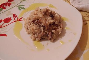 Une fois le riz cuit, ajouter les cèpes et compléter avec une cuillère de crème.