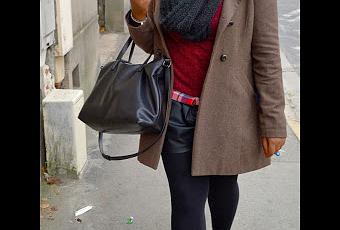 Manteau---> BershkaPull---> New LookRobe tartan---> AsosShort en cuir---> ZaraEcharpe---> H&MSac---> ZaraBoots chelsea---> Asos