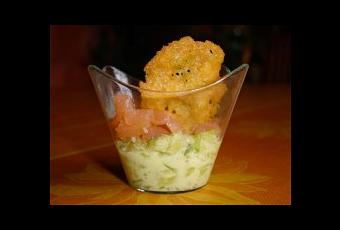 39) Verrines ossau iraty crevettes marinées coulis de poirvron