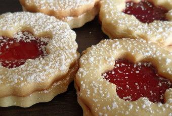 Pour les assembler tartinez de confiture les sablés sans trous et déposer les 2eme avec un trou dessus.
