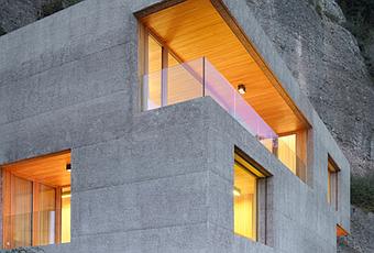 Huse Vacation est une résidence construite à flanc de colline au dessus du lac de Lucerne en Suisse. Il s’agit d’une réalisation de l’agence suisse Lischer Partner Architekten, construite dans le plus pur style brutaliste, un style décidément intemporel. Mais ce brutalisme est ici fondu dans un environnement minéral d’apparence très voisine, à tel point que la résidence semble sculptée dans la falaise rocheuse. La masse très géométrique de la maison est percée par de grandes ouvertures de sorte à provoquer en tout point la contemplation du paysage, à l’instar de la maison Mediterrani 32 de Daniel Isern. Chaque chambre s’ouvre ainsi sur le lac de Lucerne. A l’intérieur, le bois chaleureux habille tous les espaces habitables de la maison, ce qui rappellera la JD House de Bak Architects.
