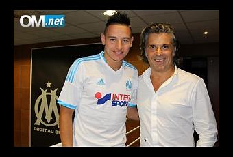 Le président de l’OM et Florian Thauvin après la signature de ce dernier.