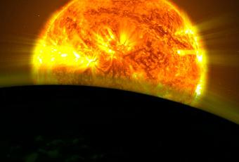Illustration de l’atmosphère visible d’une exoplanète en transit devant son étoile