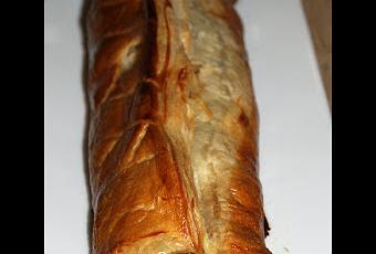 1 beau filet mignon de porc5 gousses d'ail8 pruneaux1 pommethym frais2 oignons sel & poivre250gr de pâte feuilletée1 jaune d'oeuf et un peu de laitEtaler la pâte feuilletée en fonction de la taille du filet mignon.En longueur, on doit pouvoir fermer à chaque extrémitéet en largeur, la pâte doit recouvrir complètement le filet.Disposer le filet sur un plat.Creuser des encoches avec un couteau pour placer les demi gousses d'ail.Saler poivrer l'ensemble du filet.Le poser sur la pâte feuilletée.Poser les pruneaux sur toute la longueur du filet.Emincer l'oignon et la pommeet disposer par dessus.Parsemer de thym, saler & poivrer.Fermer la pâte autour du filet et à chaque extrémité.Faire un petit trou au dessus, au milieu,pour faire une cheminée!Badigeonner avec le jaune mélangé à un peu de lait!Four 220°C pendant 15 minutespuis 180°C pendant 30 minutes.Et je vous souhaite une St Nicolas gourmande!!