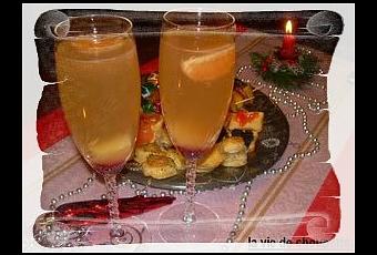 *complétez de champagne frais + 1 trait de grenadine + 1 quartier d'ananas + 1 de mandarine