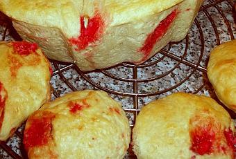 - Disposer les boules dans les moules : j'ai pris des moules à muffins pour les briochettes, et un moule rond à brioche, pour la plus grande. Dorer les brioches à l’œuf battu.