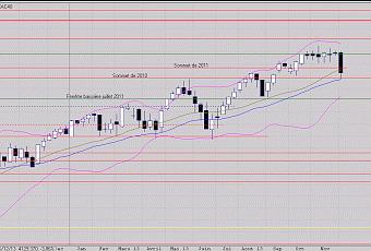Inutile de préciser que si cette figure se présentait à la fin de ce mois de décembre, nous serions alors exposés à une très forte dégradation de notre marché (avec une bougie trimestrielle dangereuse de surcroît) Cela dépendra vraisemblablement de l'orientation à venir de Wall Street qui pourrait inscrire de nouveaux sommets; mais il faudra savoir en profiter si tel est le cas, afin d'éviter le pire!
