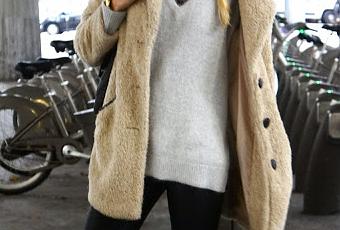 Avec ce froid rien de mieux que mon legging en cuir bien moulant Sud Express, mon manteau "moumoute" Urban Outfitters et mon pull en angora H&M !