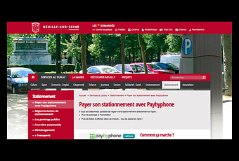 Depuis le 2 décembre, la ville de Neuilly-sur Seine et VINCI Park proposent de payer le stationnement par mobile avec PayByPhone. La solution est disponible dans l'ensemble de la ville aussi bien pour les résidents pour payer les stationnements journaliers ou hebdomadaires, que pour les visiteurs horaires.