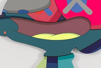 Kaws, Brian Donnelly, est un artiste américain contemporain qui vit à Brooklyn. Issu de la scène graffiti, il concilie les références aux icônes de la culture pop, l’énergie frontale des peintres urbains et des moyens de production à grande échelle typiques du pop art. L’artiste est diplomé est diplômé de la School of Visual arts en 1996