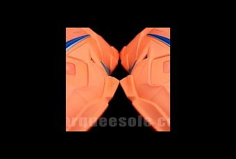 Les sneakers de King James ont un upper en Hyperposite et Dynamic Flywire orange contrasté par des touches de bleu façon Knicks NY et Cavaliers Cleveland.