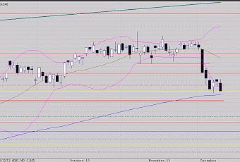 Le rebond attendu n'a donc pu se développer au-delà de la bougie d'hier, ce qui confirme que le harami de fin de semaine dernière ne peut stopper la tendance baissière qui est en train de se développer.
