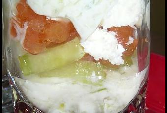 apéritif, verrine, concombre, tomate, feta, yaourt grec