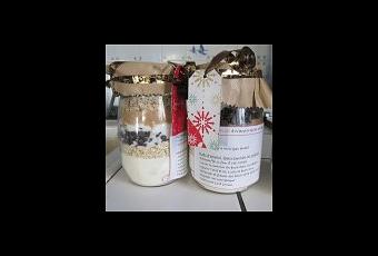 - Préparer une étiquette avec la recette des cookies et la coller sur le bocal
