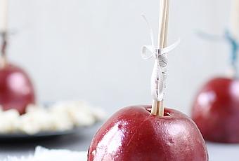 7- Lorsque le caramel est froid, donnez un effet cuivré en mettant un peu de colorant sur votre index et frottez les pommes.