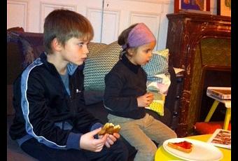 Je suis allée les chercher à leur école et je les ai ramenés chez eux en attendant leur maman. Ils sont crevés, c'est la fin du trimestre. Lavage de mains, goûter, télé ...