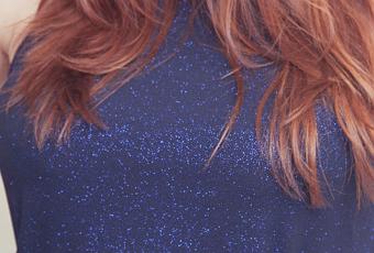 J’ai voulu vous faire un petit look de fêtes de fin d’année avec un joli top brillant pour le côté festif et fluide pour masquer le ventre et j’ai surtout voulu oser la jupe (après tout, c’est la fête!) qui, elle, doit être près du corps pour mettre en avant la silhouette ; le tout perché sur des talons pour affiner les jambes et le tour est joué ! Si vous n’osez pas le collant couleur chair, mettez un noir mais pas opaque pour garder un côté sexy.