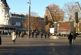 Pour ne surtout pas laisser leur part d'hommages à Mandela (au fait, combien étaient-ils à le soutenir les 20 premières années de sa détention?), Hidalgo et Delanoë ont fait installer à grands frais un écran géant place Philippe Muray dite de la République. Jack Lang était aux commentaires, Léon Zitrone n'étant plus disponible. Pour apprécier l'importance de l'audience, rien de telle qu'une photo ! Merci pour ce cliché à XL qui se reconnaîtra ...