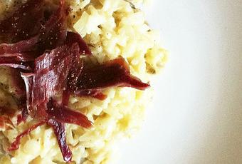 Servir le risotto bien chaud avec quelques copeaux de jambon et un tour de poivre –vous allez vous régaler, vous verrez.