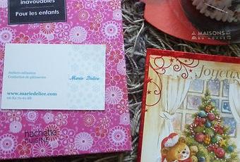 Voici le lot que j’ai remporté lors du concours organisé pour les 1 an du blog de Marie : Marie Délice :) !!! J’ai remporté un kit pâtisserie pour enfants composé d’un petit livre de cuisine, de moules à cupcakes et d’une carte de Noël (avec une petite carte de visite) !!! Merci à Marie pour ce cadeau