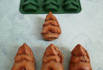 Bien incorporer tous les ingrédients, jusqu'à obtenir une préparation homogène.Répartir la pâte dans des moules silicone individuels, en prenant soin de bien tasser et lisser le dessus, afin d'avoir un beau sapin après démoulage !