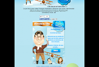 Depuis, tout le monde en parle et c’est dans ce contexte que le site humoristique « Avionoutai.com » a vu le jour. Il s’agit d’un jeu en ligne, dont le thème est d’aider le président à retrouver son avion et où ce dernier représente la figure principale. Nicolas Sarkozy et Valérie Trierweiller y sont également, mais ils ne semblent pas très contents contrairement à François Hollande qui semble bien s’amuser!!