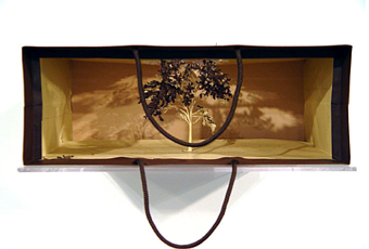 Il protège ses créations à l’intérieur du sac comme pour mieux montrer sa fragilité, ou le projette sur le mur comme un hommage à son milieu. Il dit qu’il y a un moment où ces arbres de papier projetés sur les murs vivent de leur propre force et que c’est comme s’il aidait le papier à réveiller son habilité à être un arbre.”