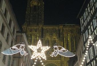 Noël à Strasbourg (France). Image prise par hasard : retrouvez-vous le Bonnet rose en promenade autour de la cathédrale ?