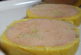 2) Le lendemain cuire le foie gras: le mettre dans une casserole d’eau froide, monter la température à 80°c pendant 20 min, couper le feu et laisser refroidir dans l’eau. Réserver 1 jour au réfrigérateur et servir.