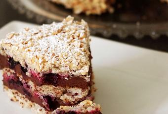 4. Parsemez le dessus de la pâte de noisettes concassées et faites cuire 10 à 15 minutes à 180°C. Surveillez le temps de cuisson.