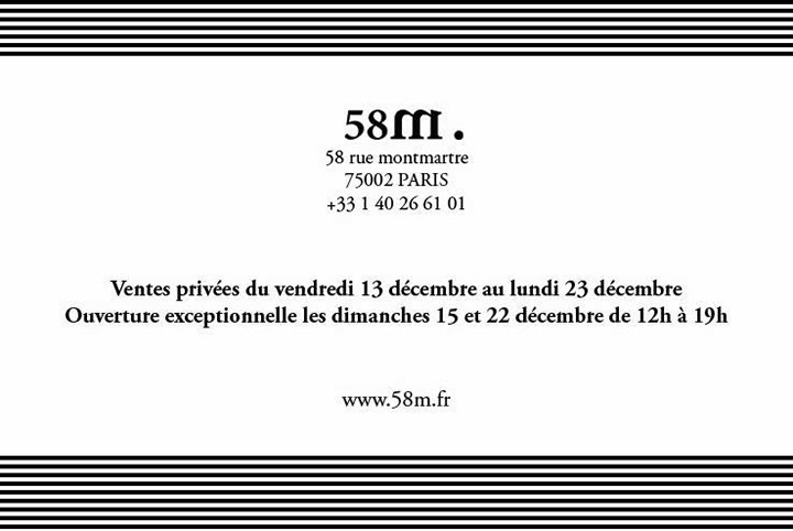 Quand ?Du vendredi 13 au lundi 23 décembre 2013Où ?58 rue Montmartre75002 Paris>>> Ici <<<Métro :Sentier (ligne 3)Etienne Marcel (ligne 4) Quand ?Du samedi 14 au dimanche 22 décembre 2013 (10h30/20h)Où ?7 rue Froissart75003 ParisTous les jours>>> Ici <<<116 rue de Turenne75003 ParisLes week-ends>>> Ici <<<Métro :Filles du Calvaire (ligne 8) Quand ?Du mardi 17 au dimanche 22 décembre 2013 (12h/20h)Où ?28 rue Beaurepaire75010 Paris>>> Ici <<<Métro :Jacques Bonsergent (ligne 5)