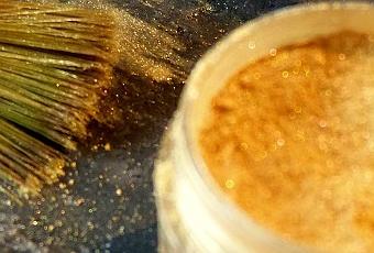 Quand il est solidifié, commencez à étaler délicatement la poudre d'or alimentaire au pinceau fin..