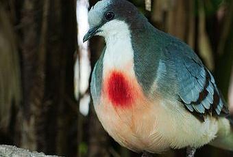 La gallicolombe poignardée (Gallicolomba luzonica) est une colombe bien surprenante qui doit son nom à la tache rouge au coeur de sa poitrine. Nullement blessé, ni ensanglanté, la poitrine de l’oiseau est parée de surprenantes plumes rouge vif.