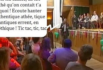 Le sermon prend la forme d’une conférence sur l’éducation ou sur le mariage gay. On n'y a pas encore vu Christine Boutin. A la fin de l’office on prend un coup ensemble ! Et l’ivresse c’est l’athée qui l’a ! On se remplit la panse par un bol de grains blancs : nourrissons l’athée au riz !