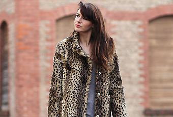 Manteau léopard, gants ultra longs et lunettes oeil de chat (Asos) – slim H&M – bottines Texto