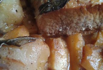 J’ai refais la recette ce week-end, cette fois avec du rôti de porc, je n’ai pas trouvé de carré de porc. J’ai servi en même temps une purée de céleri.