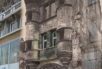 La carte postale date de fin 1918, il ne reste que la façade de l'édifice et les deux murs attenants.