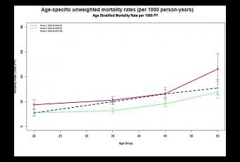 C’est donc, en conclusion, une tendance positive à une espérance de vie croissante des personnes vivant avec le VIH, qui se rapproche de celle en population générale.