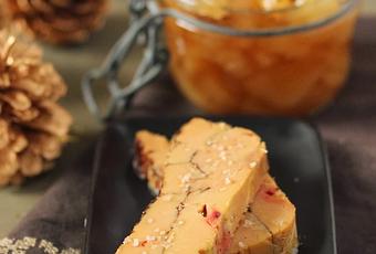 Maintenant que vous avez la recette du chutney de poires, il vous faut la recette du foie gras. En cherchant des recettes de foie gras, je suis tombée sur une technique intéressante de cuisson. Le foie gras est coupé en tranches, passé au four à basse température et assemblé ensuite en terrine pour un résultat marbré très sympathique.