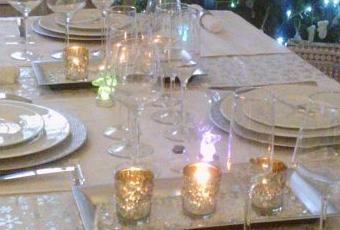 J’ai opté cette année pour une personnalisation de la table en utilisant des assiettes de présentation argentées qui sont là uniquement pour leur aspect décoratif, mais aussi, pour permettre de ne pas dégarnir la table lors du changement d’assiette.