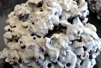 Chaque boule est ensuite congelée et vaporisée avec du beurre de cacao blanc afin de donner un air de neige poudreuse à ces boules croquantes qui seront une gourmandise appréciées à Noël