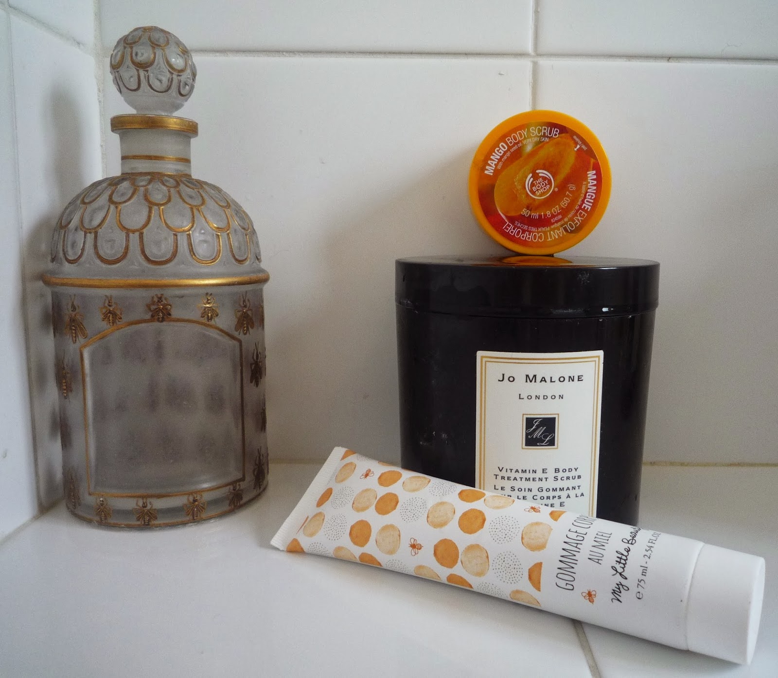 1 à 2 fois par semaine, je me fais un gommage: là encore, pas de marque en particulier. C'est selon l'achat coup de cœur du moment, un cadeau que j'aurai reçu...Huile pour le bain Jo Malone