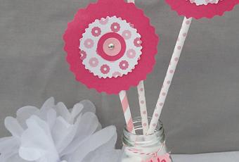 J’ai découpé des ronds de taille différente dans du joli papier rose clair, rose foncé, blanc avec des fleurs… J’ai accrocher tous mes ronds ensemble en perforant le centre de ces derniers et en fixant le tout avec une attache parisienne.