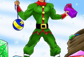 Et voilà le résultat, Juju aide le père Noël à finir de remplir sa hotte.